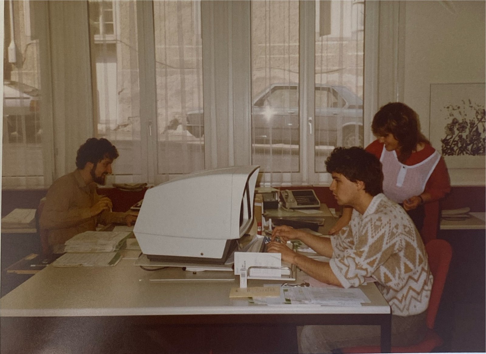 Nuovi uffici e nuovi computer: rassegna stampa in tedesco (PDF) sulla giornata delle porte aperte della nuova agenzia generale di Muri nell’aprile 1984.