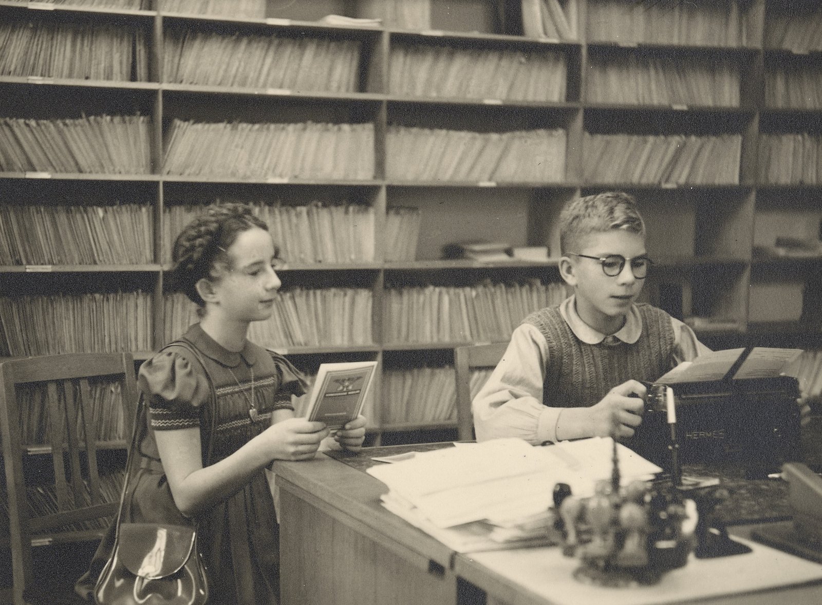Un libro commemorativo degli agenti generali, redatto per il direttore uscente Alfred Eggimann, offre uno spaccato unico della storia dell’allora agenzia circondariale di Weinfelden negli anni Cinquanta. Ida Lüthy, che iniziò a lavorarvi nel 1933, era responsabile della contabilità, emetteva le fatture e si occupava di tutti i lavori d’ufficio. Prima del pensionamento dell’agente generale Paul Thurnheer nel 1935, Ida raccomandò come suo successore il fidanzato Alfred Lüthy, tecnico tessile presso l’ex Winzeler Ott A.-G. Alfred venne effettivamente scelto.