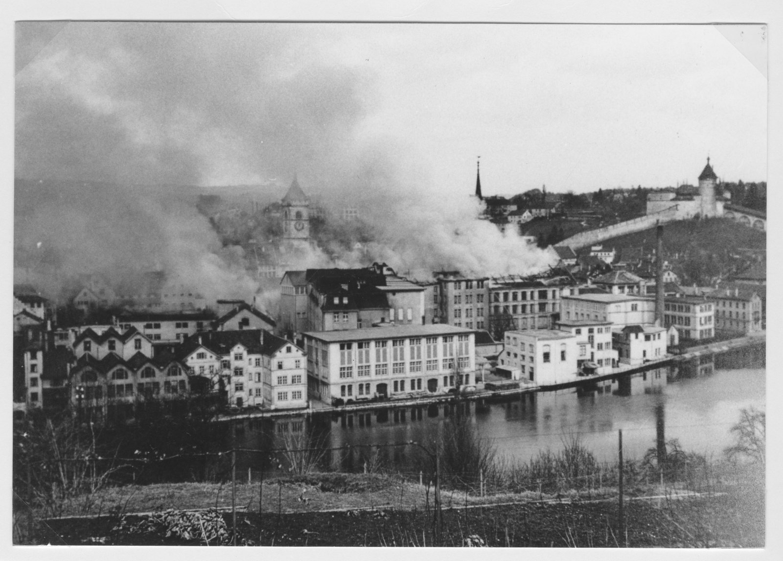 Il 1° aprile 1944, Sciaffusa subisce per errore un grave bombardamento a opera di aerei degli Alleati: 40 morti, circa 120 feriti e oltre 500 edifici danneggiati o distrutti. Tutte le assicurazioni contro gli incendi partecipano alla copertura dei danni derivanti da questa violazione della neutralità. La Mobiliare contribuisce con circa 3,7 milioni di franchi, poi rimborsati dagli Stati Uniti, che avevano causato i danni.