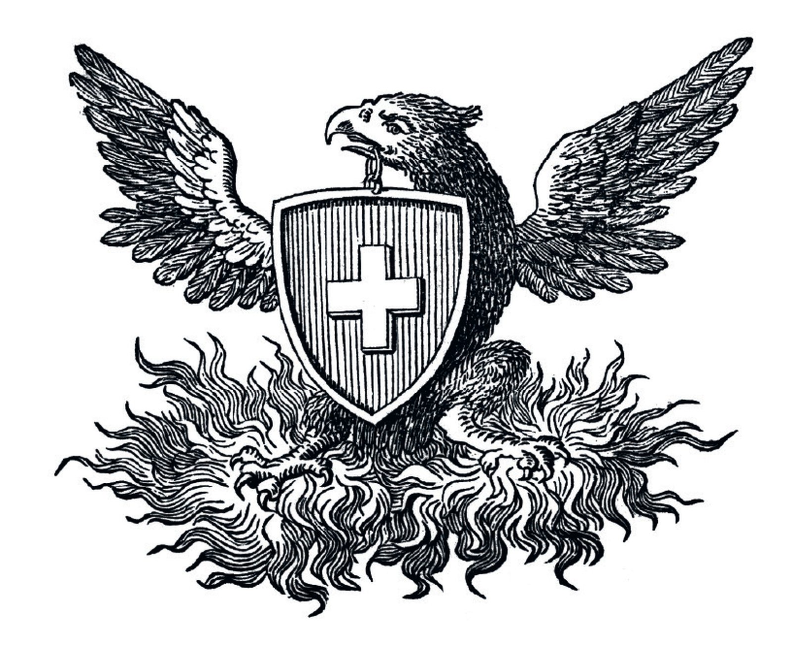 Il grafico Hans Hartmann trasforma la fenice nella M di «Mobiliare», a rappresentare le ali, e vi sovrappone la croce svizzera.