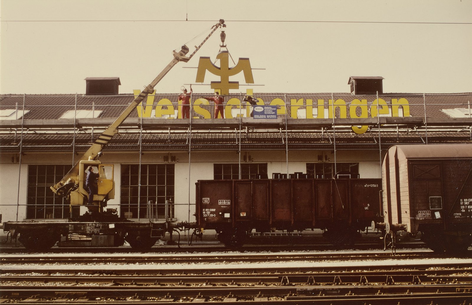 Montaggio del logo alla stazione ferroviaria di Olten