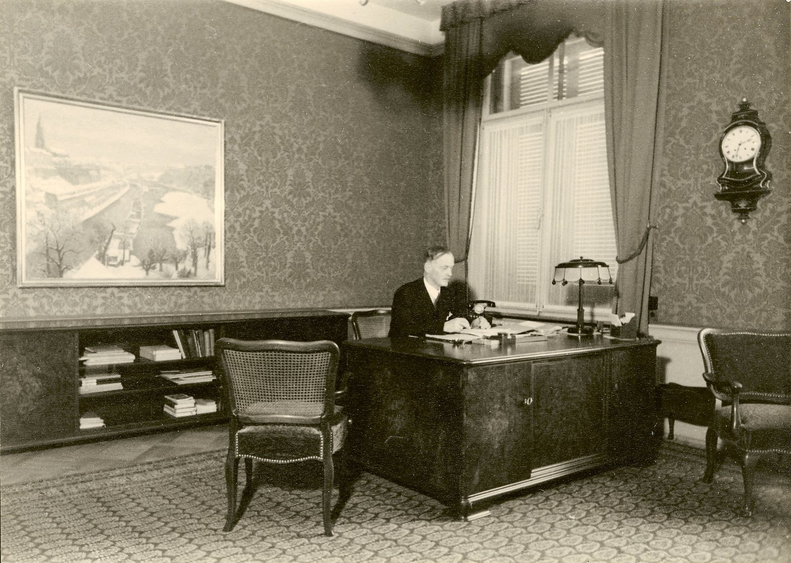Anni 1930: il direttore Hans Pfister nel suo ufficio.