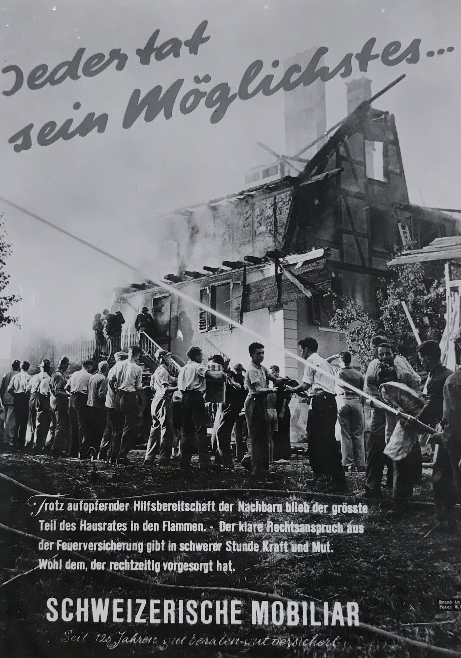 Questo senso civico viene reinterpretato con la fondazione della cooperativa Mobiliare nel 1826, in un’epoca nella quale in Svizzera sono presenti otto assicurazioni contro gli incendi straniere, quasi tutte società anonime. Il manifesto realizzato per i suoi 125 anni vuole quindi omaggiare le origini della Mobiliare, fondata sulla solidarietà.