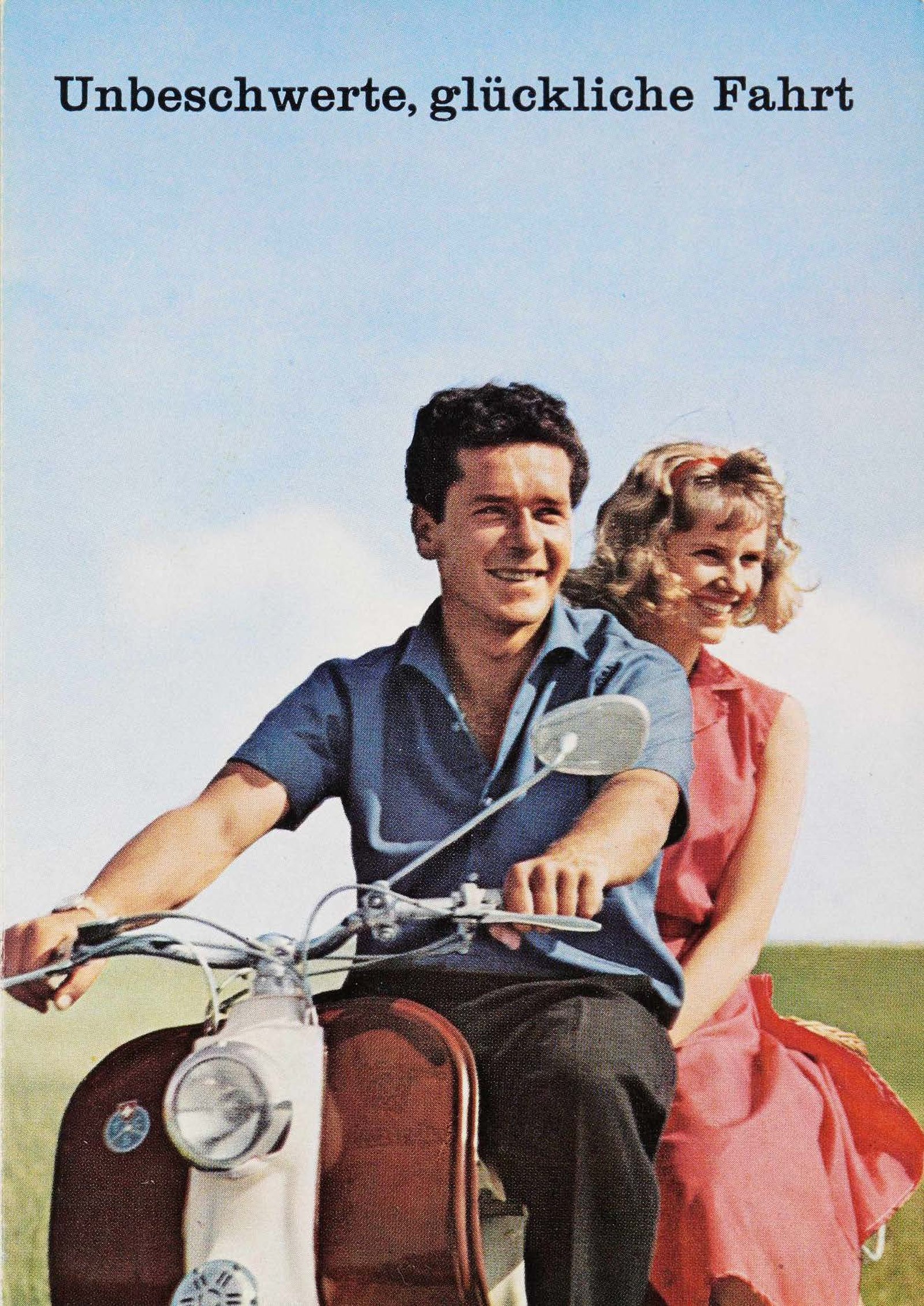 Nel 1958 fu pubblicato il prospetto illustrato della Mobiliare. Quarant’anni esatti prima del primo schizzo di sinistro questa coppia era protagonista della nostra pubblicità, che prometteva: «Garantiamo viaggi felici e spensierati se avete deciso di proteggere la vostra moto o il vostro scooter con la nostra assicurazione per furto e incendio.»