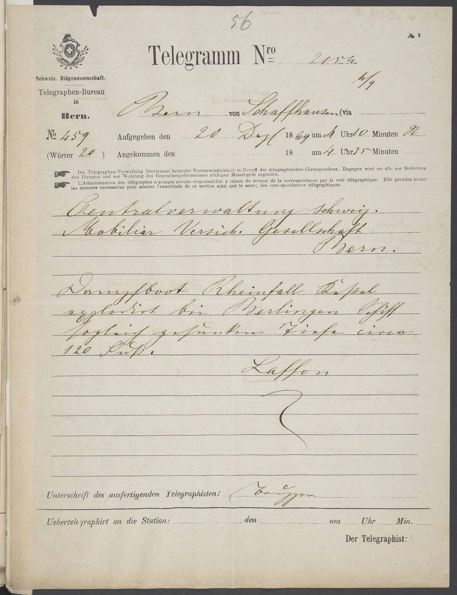 Una domanda semplice con una posta in gioco altissima. Nel rapporto di gestione della «Società di viaggi in piroscafo sull’Untersee e sul Reno» del 1869 si legge che la «Rheinfall», all’epoca al suo quarto anno di esercizio, aveva bisogno di essere revisionata. È possibile che la nave non fosse ben manutenuta? Si trattava di negligenza o addirittura di negligenza grave, come sospettava l’ispettore sinistri della Mobiliare? L’invio di sommozzatori in profondità non risolve le incognite sul piroscafo e su quanto avvenuto, quindi la Mobiliare paga quello che sarà l’indennizzo più caro di quell’anno. All’importo di 78 000 franchi per il sinistro vanno ad aggiungersi i costi per i tentativi di recupero del relitto. Dopo l’incidente, per molto tempo la Mobiliare non assicurò più piroscafi.