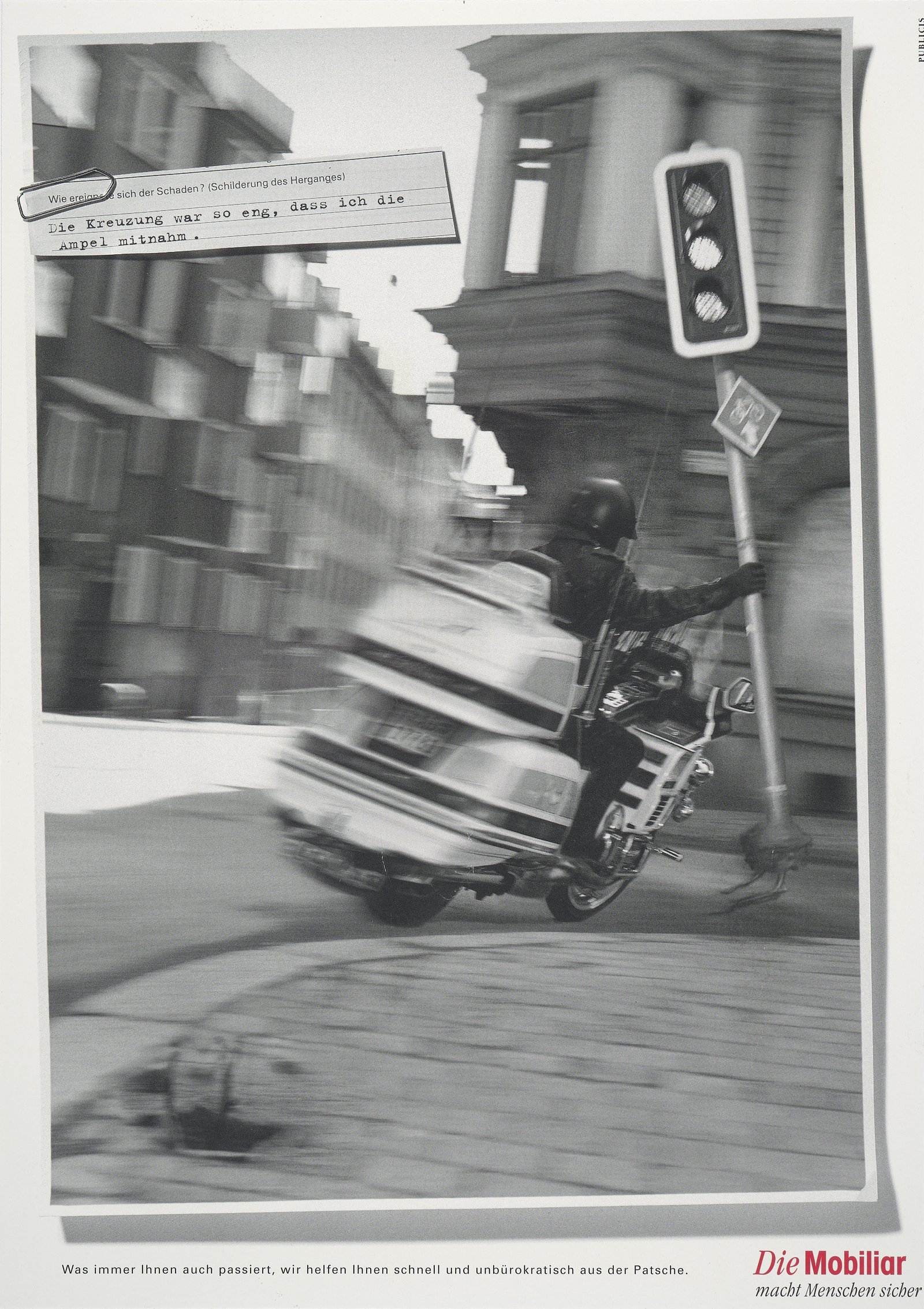 L’agenzia Aebi, Strebel propone alla Mobiliare di utilizzare in una campagna pubblicitaria le descrizioni, talvolta sconnesse, dei casi di sinistro. Ad esempio: «Mentre mi si avvicinava a gran velocità un palo elettrico, ho cercato di evitarlo zigzagando. Nonostante ciò il palo mi ha preso in pieno il radiatore». O: «Durante il montaggio del cliente sono volato dalla scala.» La ragione è che queste descrizioni avrebbero un lato umano, proprio come la Mobiliare quando fornisce assistenza.